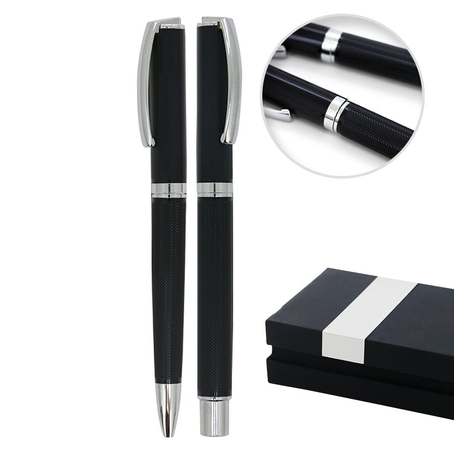 - Composition: 1 stylo à bille système twist et 1 stylo roller en métal avec capuchon