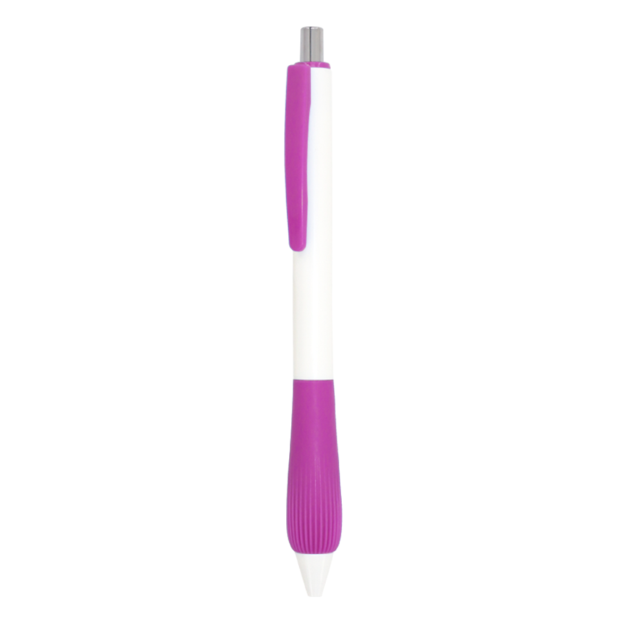 Stylo à bille en plastique corps blanc et coloré avec attributs argentés et colorés
